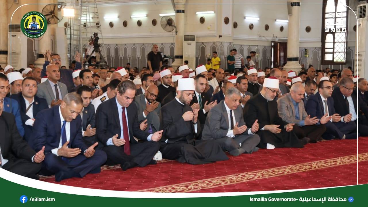 شهد الأستاذ الدكتور أسامة الأزهري وزير الأوقاف، واللواء طيار أ.ح أكرم محمد جلال محافظ الإسماعيلية، فضيلة الدكتور نظير عياد مفتي الديار المصرية ورئيس الأمانة العامة لدور وهيئات الإفتاء في العالم، والأستاذ أحمد المسلماني رئيس الهيئة الوطنية للإعلام، شعائر صلاة الجمعة واحتفال المحافظة بالعيد القومي بمسجد أبوبكر الصديق بحي أول مدينة الإسماعيلية.