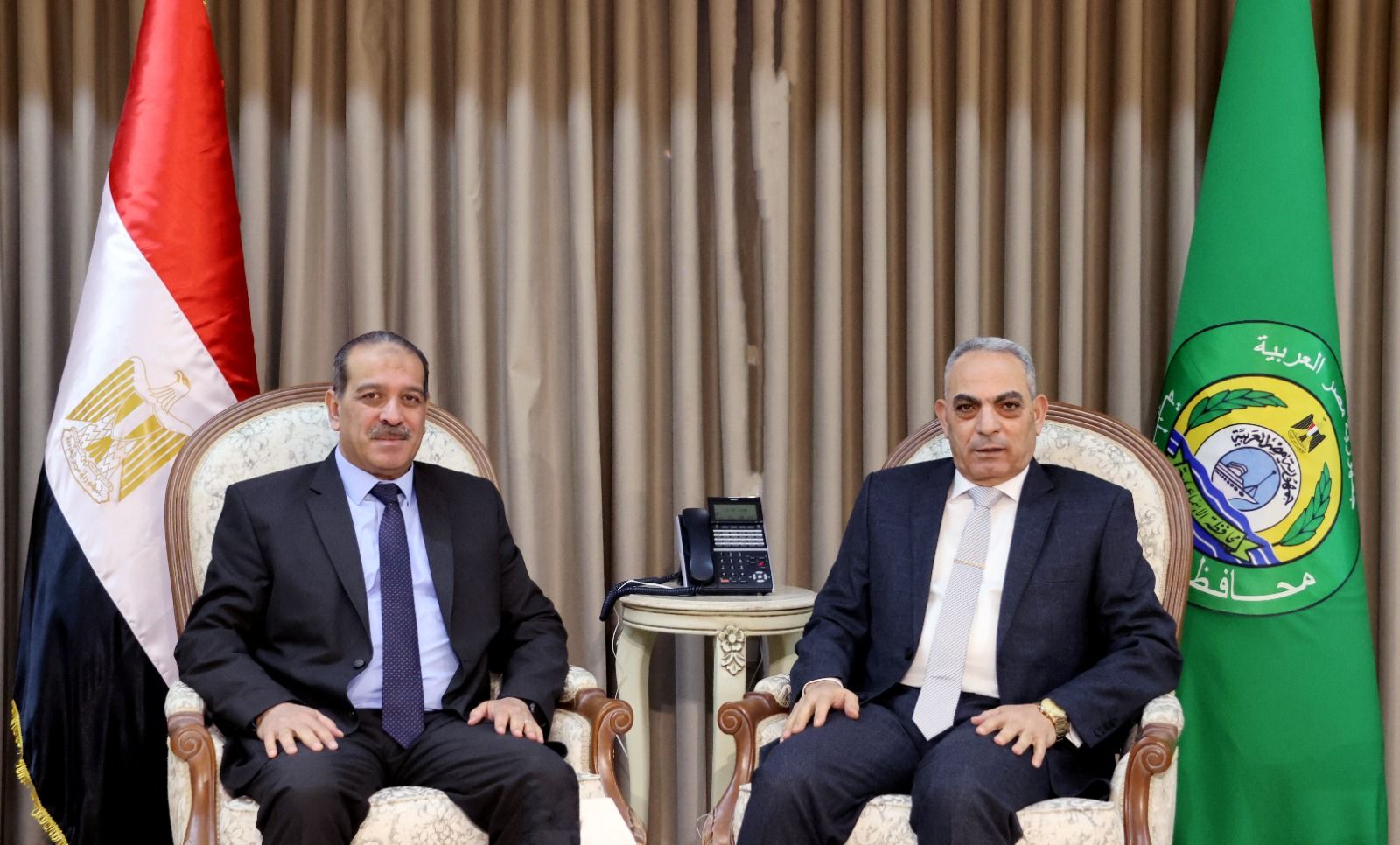 استقبل اللواء أ.ح نبيل السيد حسب الله محافظ الإسماعيلية، بمكتبه اللواء محمد عامر مساعد وزير الداخلية مدير أمن الإسماعيلية، في أول لقاء لهما عقب أداء "حسب الله" اليمين الدستورية أمام رئيس الجمهورية محافظًا للإسماعيلية.