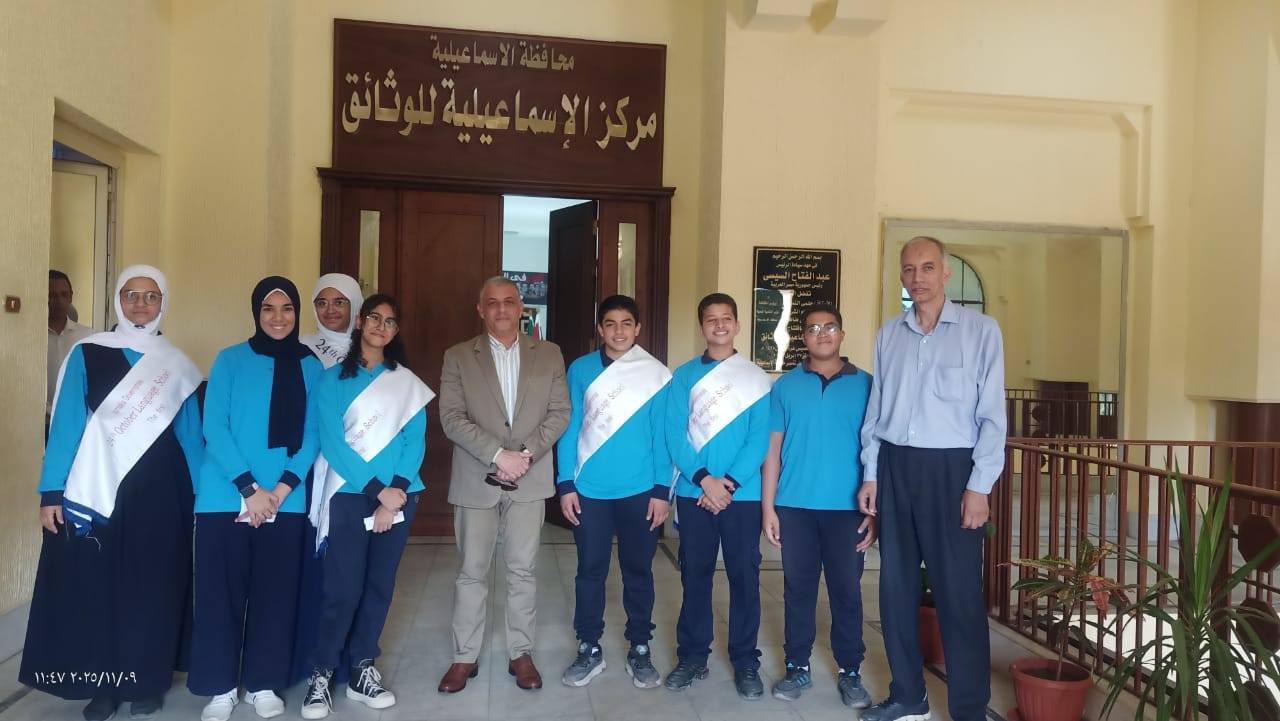 محافظ الإسماعيلية يلتقي طلبة مدرسة ٢٤ أكتوبر الرسمية للغات خلال زيارتهم لمركز الوثائق